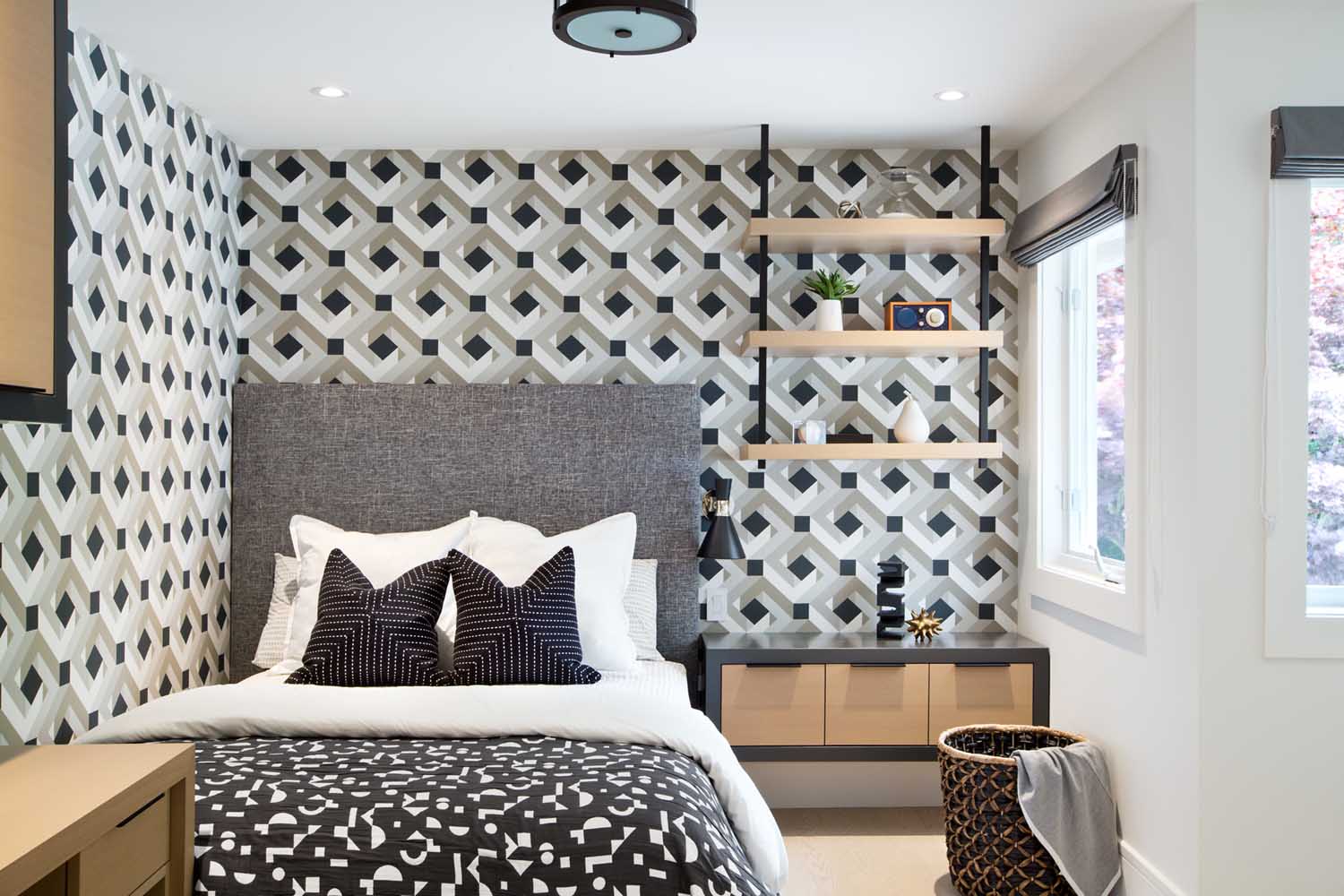 我們會(huì )在在項目開(kāi)始時(shí)與客戶(hù)充分溝通,深入的了解他們希望在新家中看到什么。我們從他們的藝術(shù)收藏中中汲取了很多靈感,我們使用了強烈的圖案和顏色,材質(zhì)的運用也是我們設計的關(guān)鍵,因此我們將白橡木櫥柜與大理石、金屬拉絲的五金和整個(gè)墻面使用的紋理墻紙等飾面相搭配,營(yíng)造出一種視覺(jué)的沖擊力。